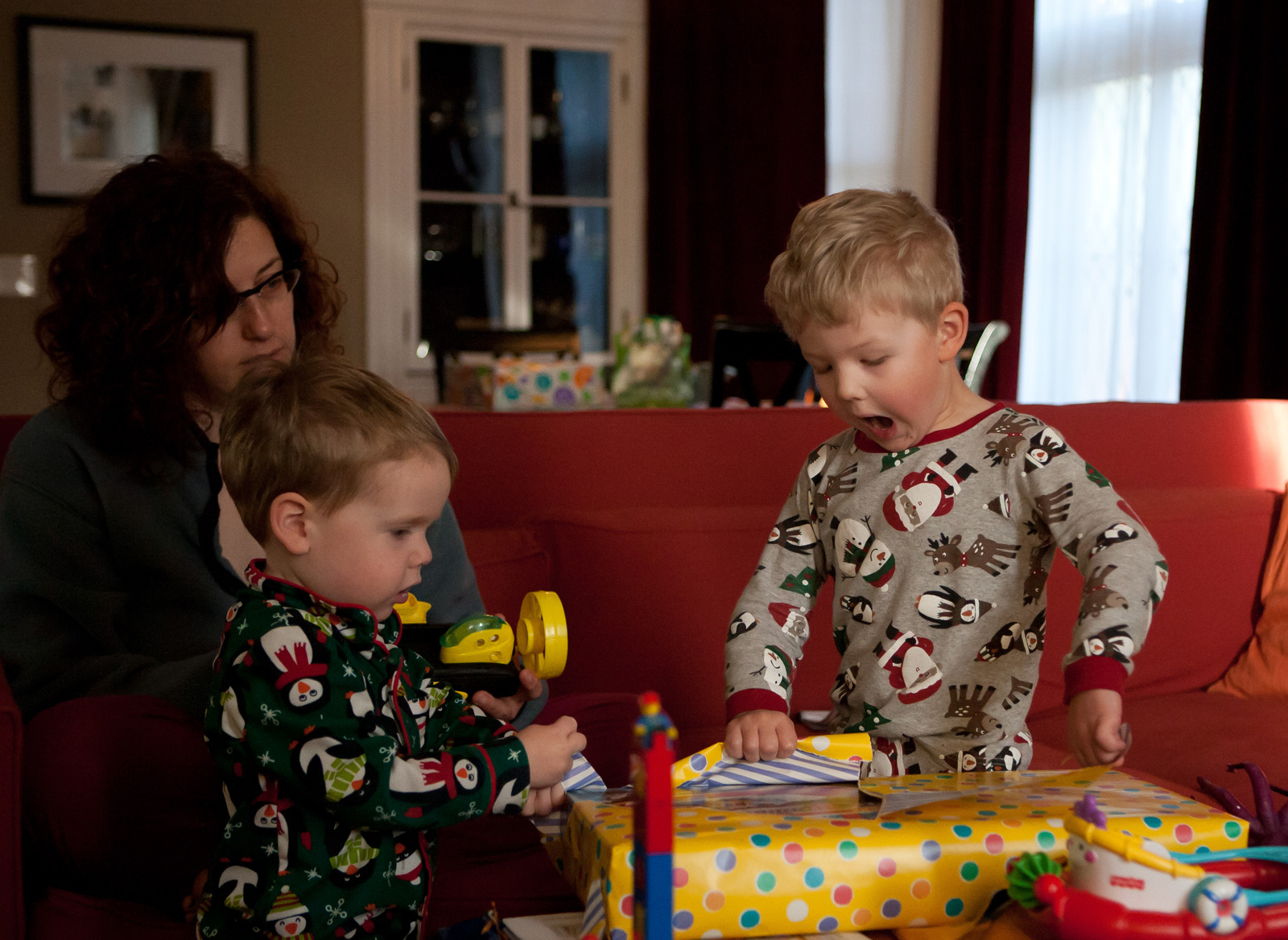 Happy B-day to our Fantastic Four-Year-Old!! We’ve had a great day celebrating the Finnster’s cumpleaños with his Nack grandparents, and we can’t wait to dive into tomorrow’s party, piñata, and fire truck cake. He was so excited about his Lego birthday present that he literally spun out of control, doing a donut by the couch! 😀 We’ll share more photos and videos soon; for now, here’s that moment of ecstasy (click it for larger):